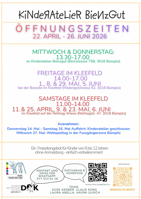 Das Kinderatelier bleibt in der zweiten Frühlingsferien-Woche geschlossen!